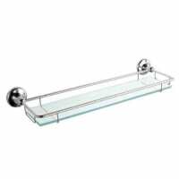 Clearance Hudson Reed Old London Chrome Bathroom Traditional 47Cm Clear Glass Shelf With Guard/Gallery Rail, Lh305/Pp1112