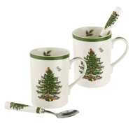 Spode Christmas Tree - 4 Piece Mug And Spoon Set