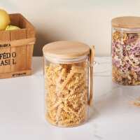 Round Glass Storage Jar with Bamboo Lid and Spoon - 1L