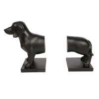 Modern Abstract Resin Dachshund Dog Bookends - Black Decorative Dog Sculpture bookends - Desk Ornament
