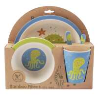 ORNAMI 5-Piece Children Dinner Set Made From Natural Bamboo Fibre; Octopus Design - Eco Friendly; BPA Free and Dishwasher Safe