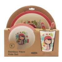 ORNAMI 5-Piece Children Dinner Set Made From Natural Bamboo Fibre; Jungle Girl Design - Eco Friendly; BPA Free and Dishwasher Safe