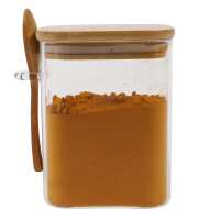 ORNAMI Square Clear Glass Airtight Kitchen Jar with Natural Bamboo Lid and Spoon for Spices; 300ml