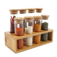 ORNAMI Set of 8 Glass Clear Airtight Spice Jars with Eco-friendly Natural Bamboo Lid and Bamboo Stand; 100ml/150ml