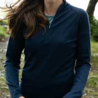 EDZ Women's Merino Mid-Layer Zip Neck Top Navy Blue