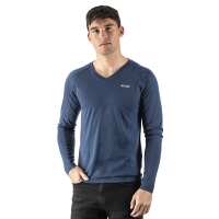 EDZ 200gsm Merino Base Layer Thermal Long Sleeve V-Neck Mens Denim Blue