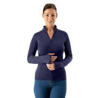 Women's Merino Zip-Neck Base-Layer Top with Thumb Holes - Indigo Blue