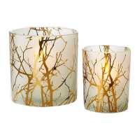 Windlicht Satiniertes Glas, Goldenes Zweigen-Muster, Stimmungsvoll Lichtspiel – Forest | Philippi S - Ø 10 cm