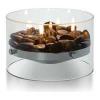 Tischkamin mit mundgeblasenem Glasring, Kieselsteinen & Lampenölbetrieb – Fire | Philippi