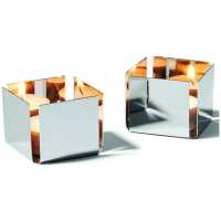 Teelichthalter Hochglanzpolierter Edelstahl, Würfelform mit Lichtschlitzen – Pep | Philippi 2er Set / Größe S