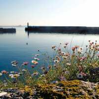 Evocative Cornwall Greetings Card - Daisies, Newlyn Harbour