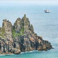 Evocative Cornwall Greetings Card - Pirate Ship, Logan Rock - NEW