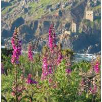 Evocative Cornwall Greetings Card - Foxgloves & The Crowns