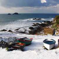 Evocative Cornwall Christmas card - Snow at Priest's Cove, Cape Cornwall