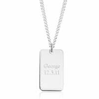 Silver Rectangular Dog Tag Pendant Curb / 20" (50cm)