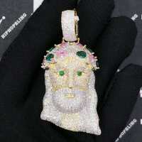 Jeweled Crown Jesus Piece VVS CZ Hip Hop Iced Out Pendant Yellow Gold