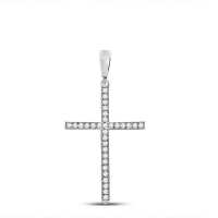 Micro Tennis Cross Pendant .10cttw Diamond 10K White Gold