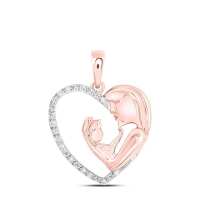 Mom Holding Child Unique Heart Diamond Pendant 10K Gold 10K Rose Gold