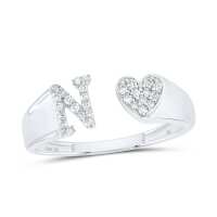 Womens Initial Letter Heart Diamond Ring 10K Gold N / 10K White Gold