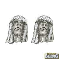 Diamond Jesus Piece Earrings .925 Sterling Silver
