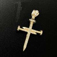 Nail Cross CZ 10K Yellow Gold Pendant