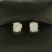 Oval Pave Diamond Earrings .28cttw 10K Yellow Gold