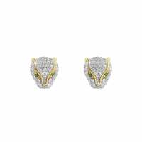 3D Tiger Face Diamond Earrings 1.24cttw 10K Yellow Gold
