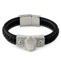 Buddha Black Leather Stainless Steel Bracelet