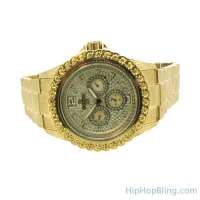 Big Rocks with Date Iced Out Bling Hip Hop Watch Yellow Gold