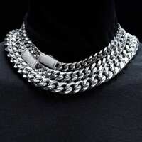 VVS Moissanite Miami Cuban Chain Steel / .925 Silver 10MM / White Gold / 24"