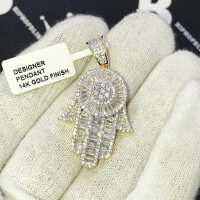 Baguette Hamsa CZ Hip Hop Bling Bling Pendant Yellow Gold