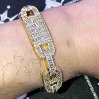 Baguette Mariner Iced Out Hip Hop Bracelet Yellow Gold / 8"