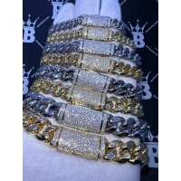 VVS Moissanite Miami Cuban Chain Steel / .925 Silver 8MM / Yellow Gold / 7" Bracelet