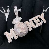 MONEY Bag VVS CZ Hip Hop Iced Out Pendant White Gold