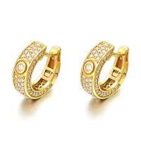 3D Pave Designer Huggie Hoop Iced Out Earrings .925 Silver Yellow Gold