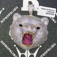 Grizzly Bear CZ Hip Hop Bling Bling Pendant Yellow Gold