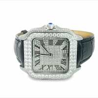 Moissanite VVS Iced Out Baller Square Leather Watch White/Black Leather Band