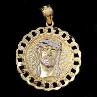 Jesus Cuban Link Circle DC 10K Yellow Gold Pendant
