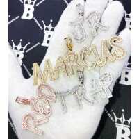 Baguette Letter Custom Personalized Iced Out Name Pendant Brass / Yellow Gold / 2