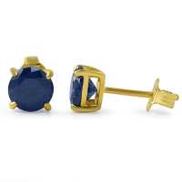 Lab Sapphire Round Stud Earrings Gold .925 Silver 6MM