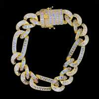 Baguette Figaro Link CZ Iced Out Hip Hop Bracelet Yellow Gold / 8"