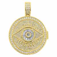 Eye Circle Medallion Iced Out Hip Hop Bling Pendant Yellow Gold