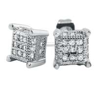 Small 3D Cube VVS Moissanite Earrings .925 Sterling Silver White Gold