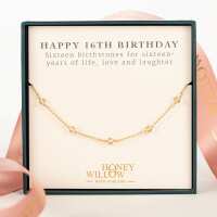 16th Birthday Gift - Birthstone Satellite Necklace - 16 Birthstones for 16 Years - Silver & Gold 14k gold-fill / 14 inches + 2 inch extender