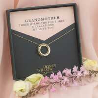 Gift for Grandmother - 3 Diamonds for 3 Generations - 9kt Gold Necklace