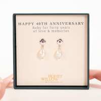40th Anniversary Gift - Ruby Star Set Pearl Earrings - Silver