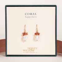 Coral & Pearl Earrings - Happiness - Silver & Gold 14k Gold-fill