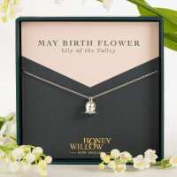May Birth Flower Necklace - Lily of the Valley - Silver 16 inches + 2 inch extender