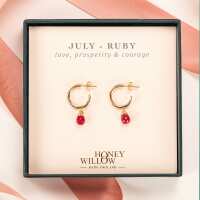 July Birthstone Earrings - Ruby Gold Hoops - 1.5cm