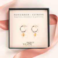 November Birthstone Earrings - Citrine Silver Hoops - 1.5cm